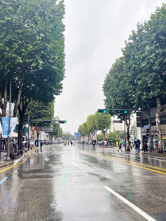 비는 여전히 내리고 있지만 도로변으로 많은 인파들이 자리를 잡고 있어 우리도 걸음을 재촉해본다.