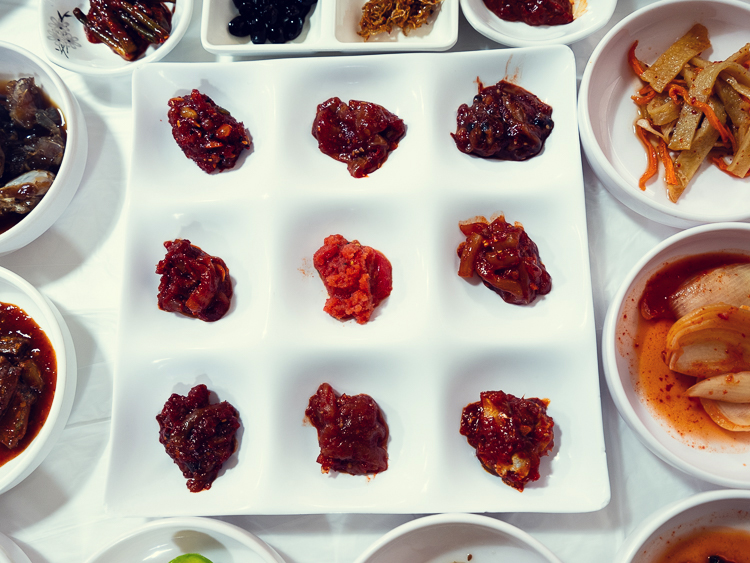 9가지 젓갈과 기본반찬, 그리고 간장게장까지 식탁이 가득찼다.