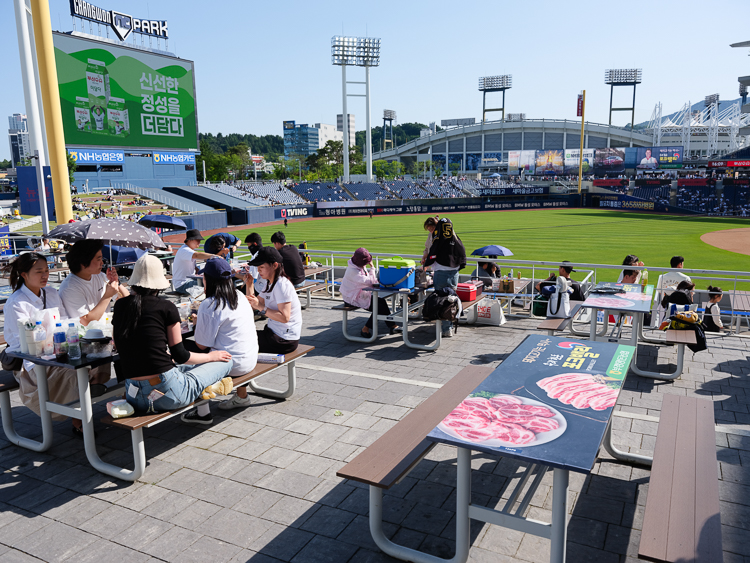 외야는 광주 챔필과 비슷한 잔디석으로 되어 있어 가족단위의 관람객들이 많다.
