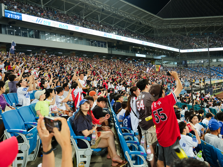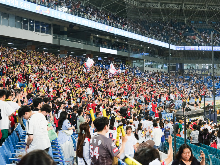 1, 2위를 다투는 중요한 경기라 응원도 뜨겁고...