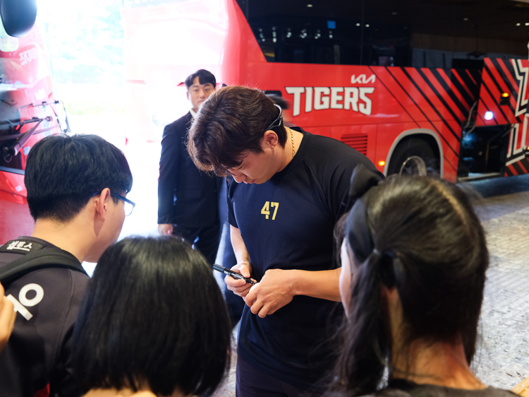 기다리는 모든 팬들에게 일일히 사인해주는 대투수~