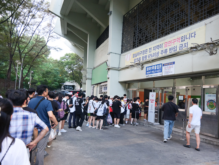 외야 전용입구로 걸어가며 더워 쓰러질뻔...