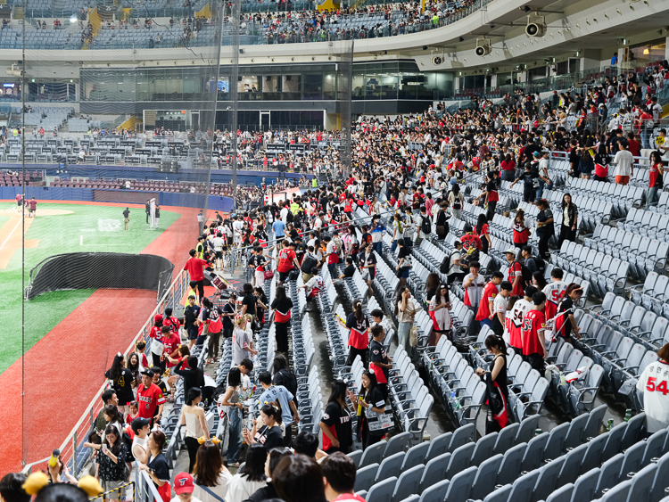 경기가 끝났지만 도영선수의 인터뷰를 보기 위해 경기장을 나서지 못한 팬들...