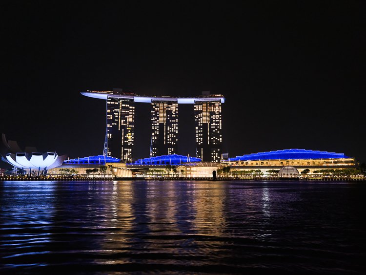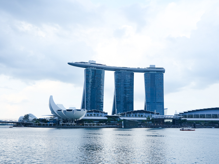 건너편으로 싱가포르의 랜드마크인 마리나 베이 샌즈 호텔이 보이고