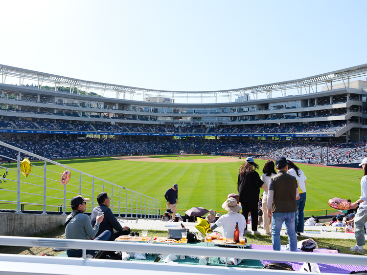 외야는 광주 챔필과 비슷한 잔디석으로 되어 있어 가족단위의 관람객들이 많다.