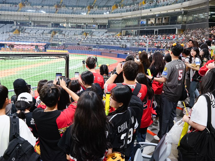 경기가 끝났지만 도영선수의 인터뷰를 보기 위해 경기장을 나서지 못한 팬들...
